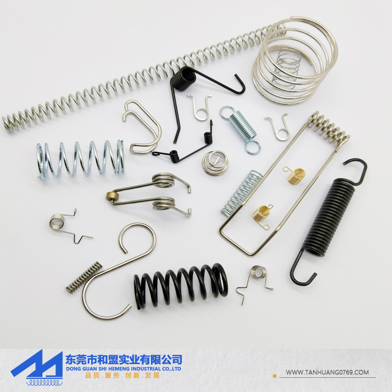 請避免如下不當(dāng)使用方式⑴超過最大壓縮量的使用(30萬回條件,接件密著長之使用)壓力產(chǎn)生進(jìn)而造成折損,接近密著長之使用,會使彈簧線部逐漸密著如此,因?yàn)閺椈啥〝?shù)變高造成荷重曲線隨之生高,近而產(chǎn)生高應(yīng)力使彈簧斷裂,請不要使用超過30萬回。⑵無預(yù)壓的使用因有間隙造成彈簧上下震動導(dǎo)致彈簧扭曲,如有預(yù)壓時,彈簧較為穩(wěn)定。⑶彈簧橫置使用彈簧橫置使用時,會造成導(dǎo)銷與彈簧磨損并斷裂。⑷無彈簧導(dǎo)引的使用如在舞彈簧導(dǎo)引的情況下使用時,很容易造成彈簧底部及本體之扭曲,其扭曲部之局部高壓力是導(dǎo)致彈簧斷裂的要因,請一定要使用內(nèi)徑導(dǎo)銷或外徑導(dǎo)引等裝置。⑸裝配面平性度不良時裝配面之平行度不良時會造成彈簧扭曲,局部產(chǎn)生高壓力斷裂,及平行度不良之場合造成彈簧扭曲與超過30萬回使用造成彈簧斷裂。請在不超過30萬回使用條件下改善裝配面的平行度。⑹有關(guān)彈簧內(nèi)徑及導(dǎo)銷與導(dǎo)銷之間間隙過小時,會造成內(nèi)徑之碰撞磨耗,其磨耗部是造成彈簧斷裂的要因,相反如間太大會造成彈簧扭曲斷裂,最佳之間為彈簧內(nèi)徑-1。0mm左右。及自由長較長的彈簧(自由長/外徑大于4以上)請用段階或?qū)тN,以避免彈簧體扭曲時與導(dǎo)銷之碰撞。⑺彈簧外徑與沉頭孔沉頭孔與彈簧間隙頭太小時,會因彈簧壓縮致使外側(cè)膨大與沉頭孔磨擦造成力集中斷裂,較佳的沉頭孔徑為彈簧外徑+1。5mm。自由長較長的彈簧時請用沉頭孔形狀。⑻導(dǎo)銷長度及沉頭孔深度較短時導(dǎo)銷太短,會造成導(dǎo)銷頭部與彈簧磨損而斷裂,導(dǎo)銷的理想長度設(shè)定為彈簧長之1/2以上,并請倒C3之倒角。⑼變方或使用使用彈簧時,彈簧受力扭曲致使內(nèi)圈彈簧插入到外圈內(nèi)(或外圈插入內(nèi)圈)造成斷裂。⑽彈簧串聯(lián)的使用以串聯(lián)方式使用時致使彈簧彎曲,并超越導(dǎo)銷或沉頭孔長度,進(jìn)而造成一相同原因之?dāng)嗔眩耙驈椈杀旧砗闪恐栽S差異造成荷重較弱者承受更大的壓縮量面斷裂。⑾碎片,異物夾雜使用時夾雜異物部分會造成有效卷部無作用僅其他部分之壓縮,實(shí)質(zhì)的有效卷數(shù)變小近面造成高應(yīng)力并斷裂,請勿將異物夾雜于彈簧內(nèi)。