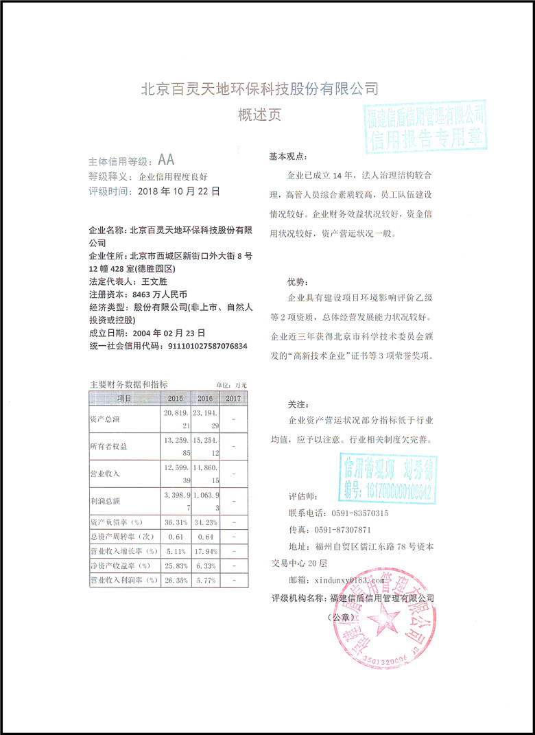 北京百靈天地環保科技股份有限公司2018
