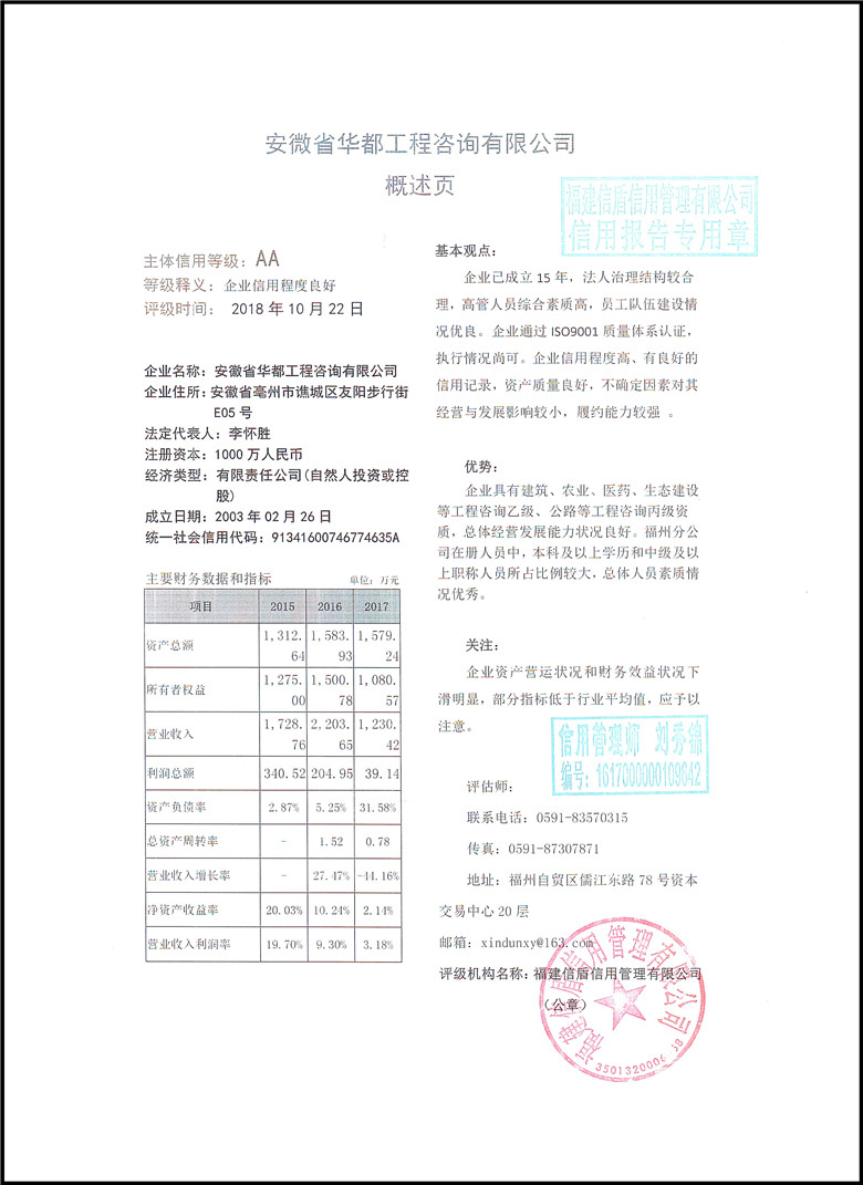 安徽省華都工程咨詢有限公司2018