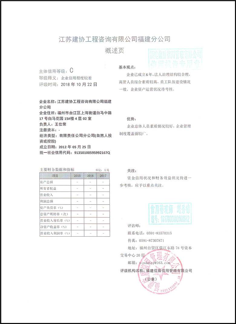 江蘇建協工程咨詢有限公司福建分公司2018