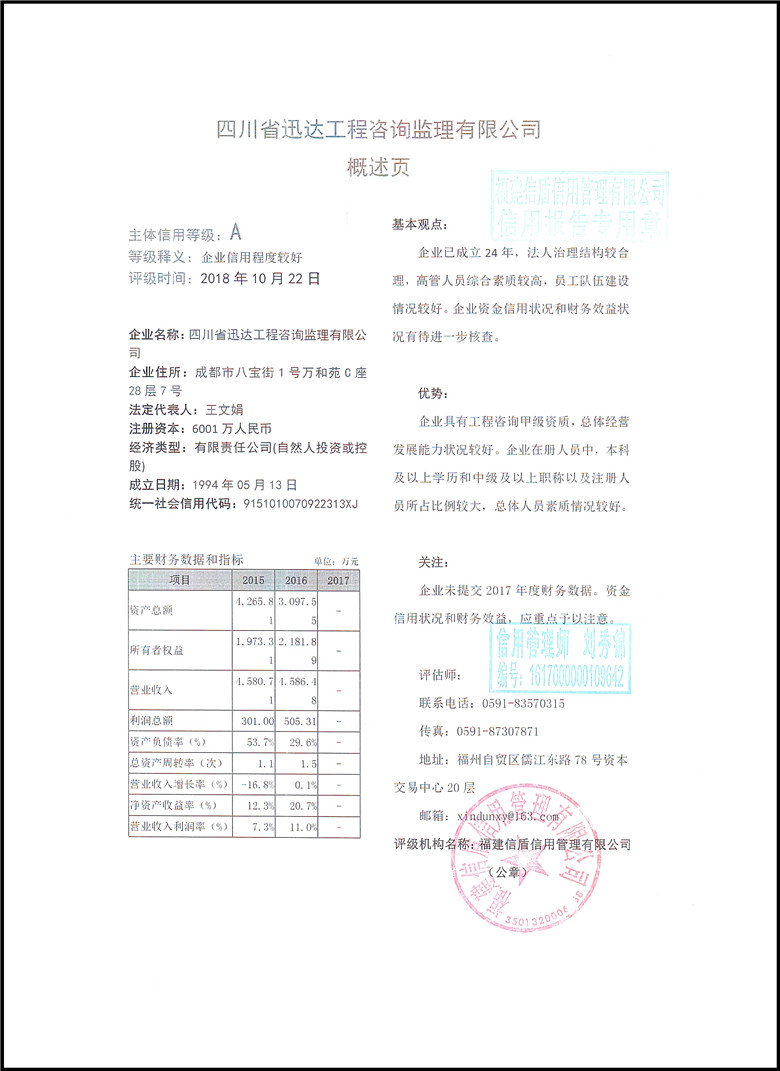 四川省迅達工程咨詢監理有限公司2018