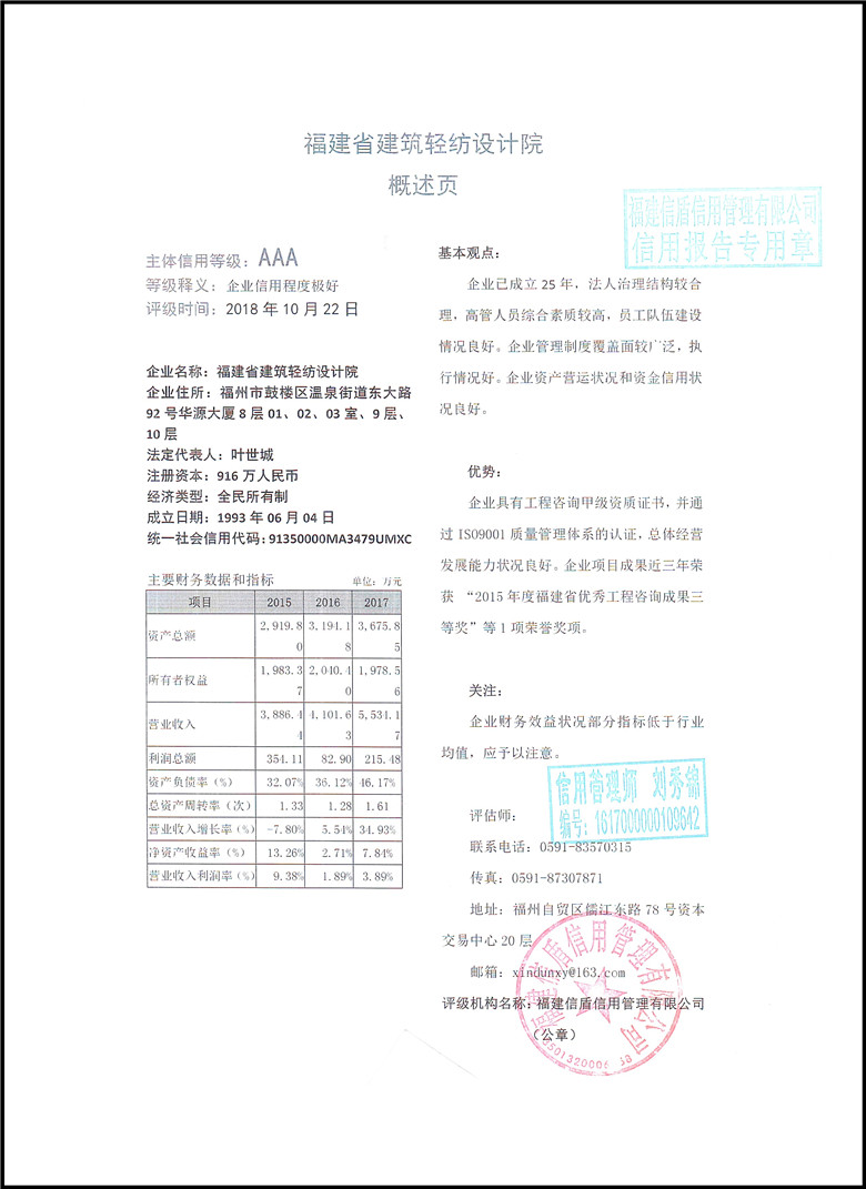 福建省建筑輕紡設計院2018