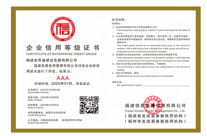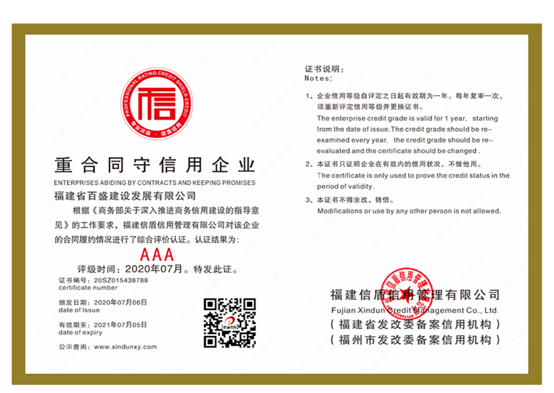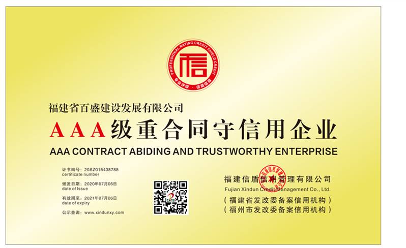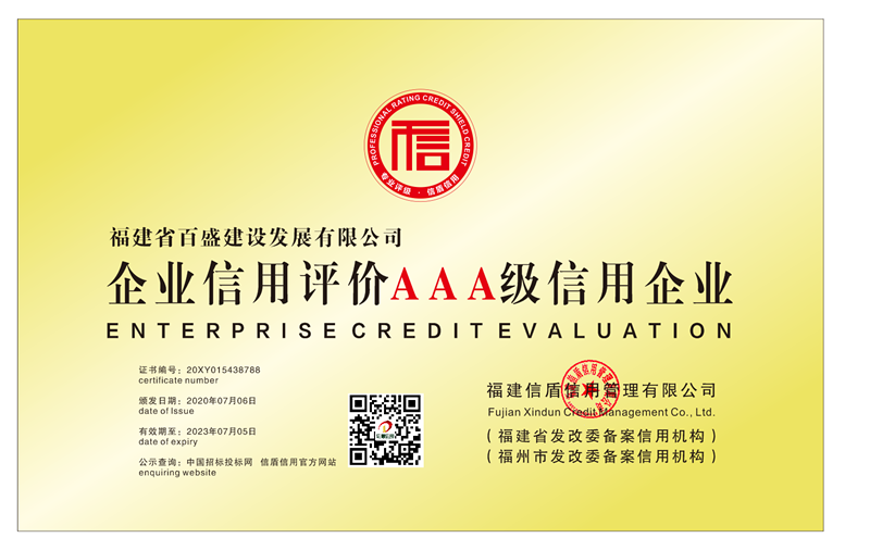 福建省百盛建設發(fā)展有限公司2020