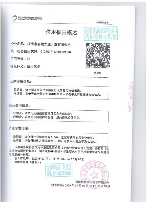 福清市惠煌農(nóng)業(yè)開(kāi)發(fā)有限公司2020-2