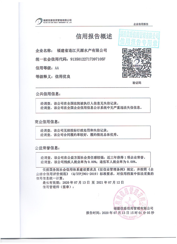福建省連江天源水產有限公司2020
