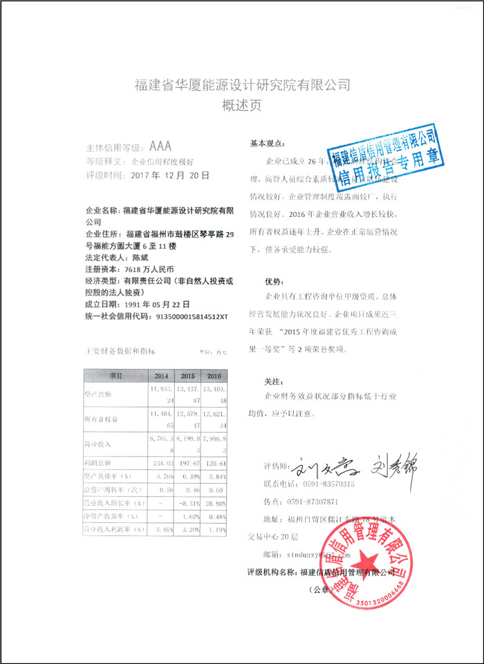 福建省華廈能源設計研究院有限公司 XDPJ201712205