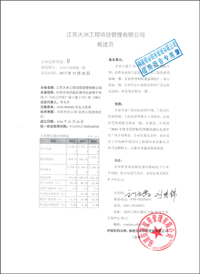 江蘇大洲工程項目管理有限公司 XDPJ201712206