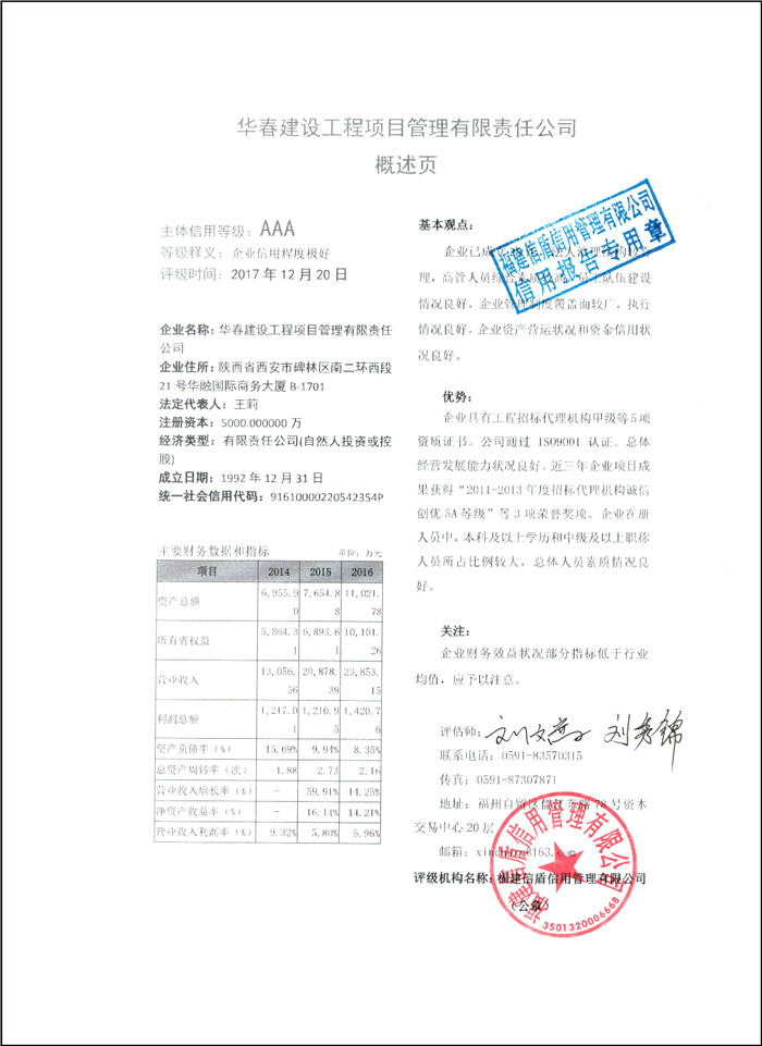 華春建設(shè)工程項目管理有限責(zé)任公司 XDPJ201712238