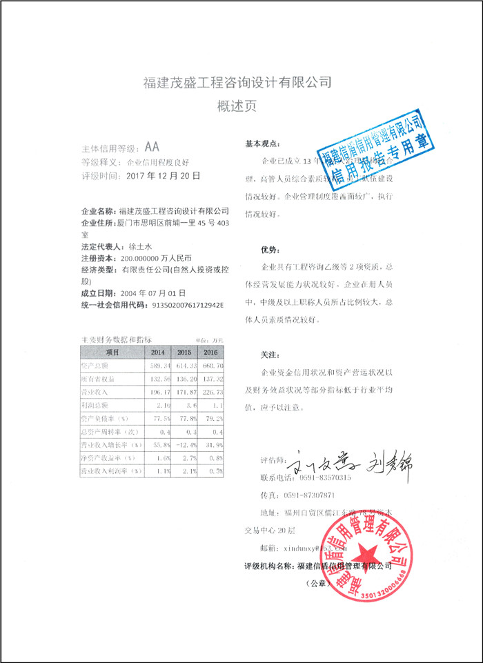 福建茂盛工程咨詢設計有限公司 XDPJ201712242