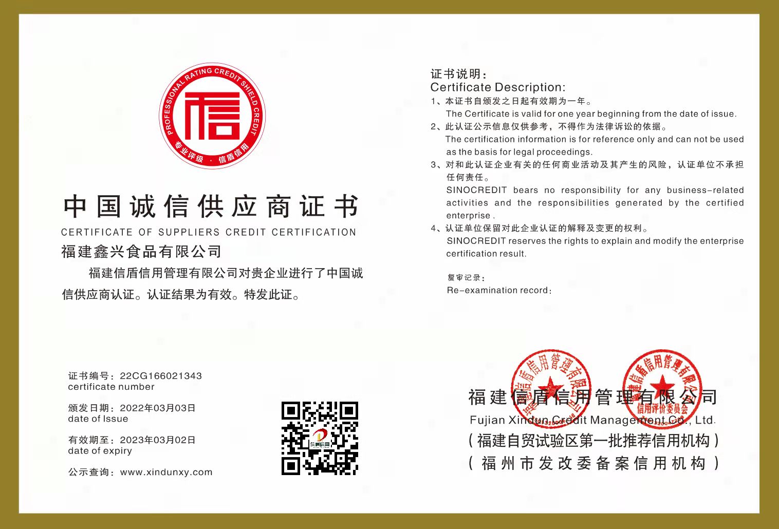 福建鑫興食品有限公司2022