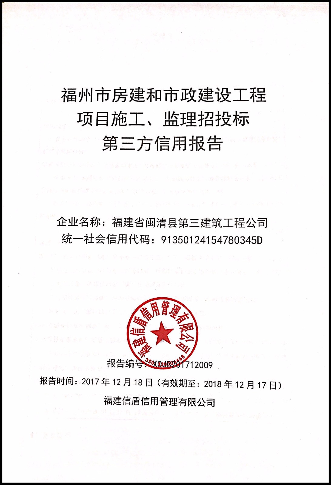 福建省閩清縣第三建筑工程公司 XDJB201712009