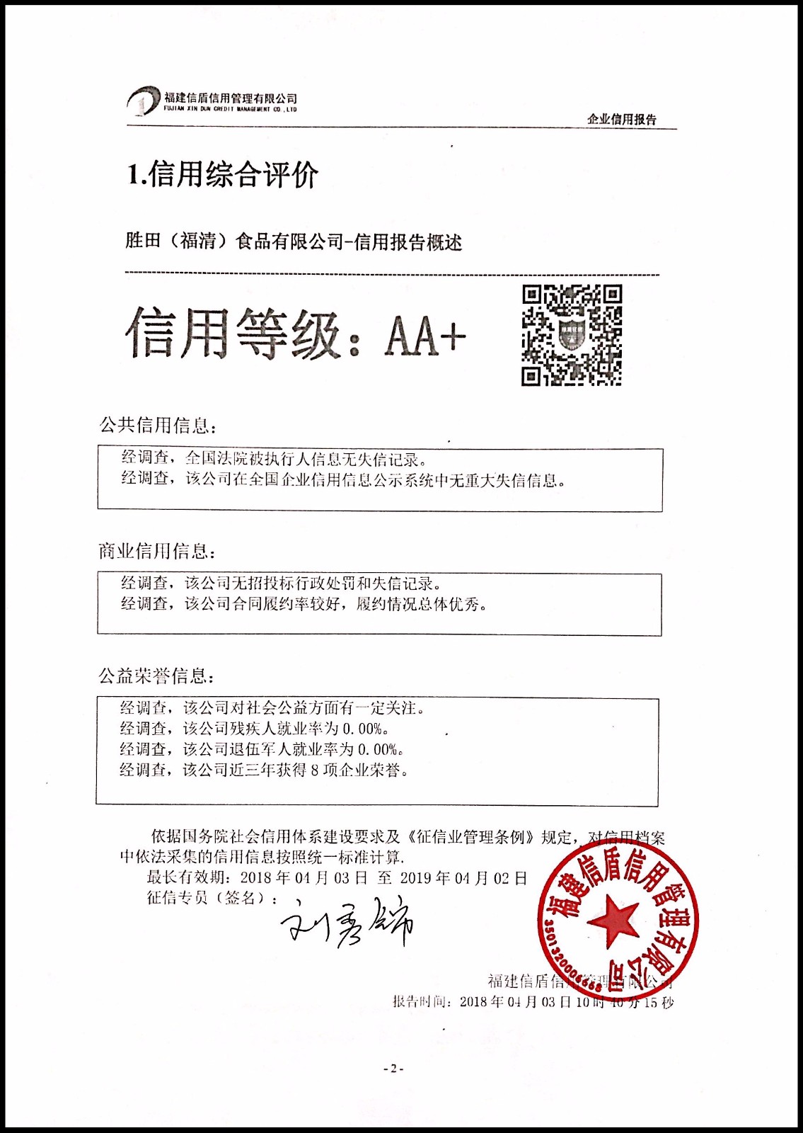勝田(福清)食品有限公司 XDBG201804001