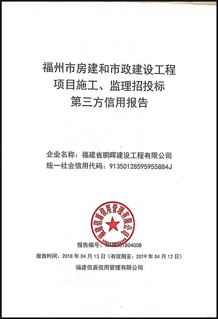福建省鵬暉建設工程有限公司 XDJB201804008