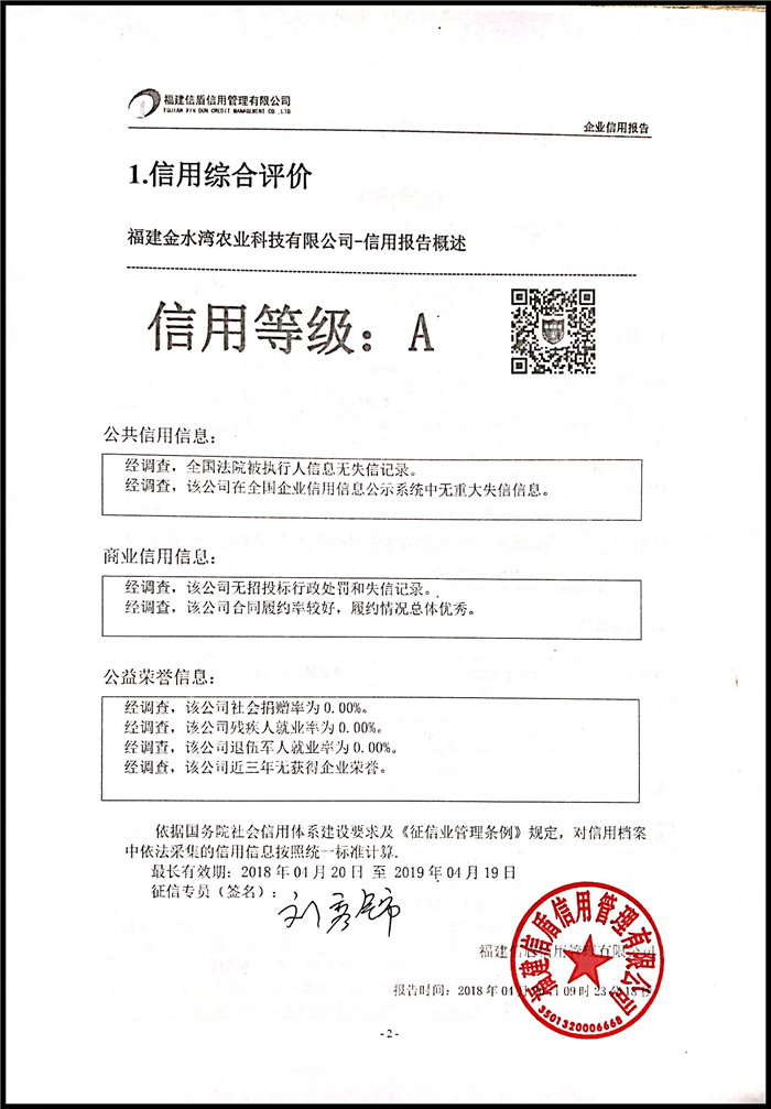 福建金水灣農(nóng)業(yè)科技有限公司 XDBG201804020