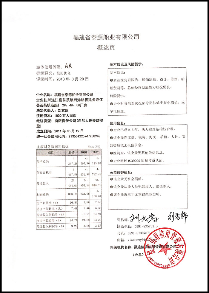 福建省泰源船業(yè)有限公司 XDPJ201803159