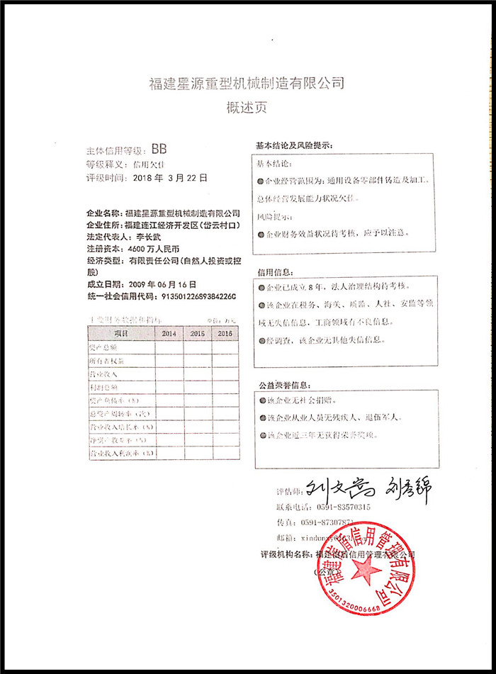 福建星源重型機械制造有限公司 XDPJ201803171