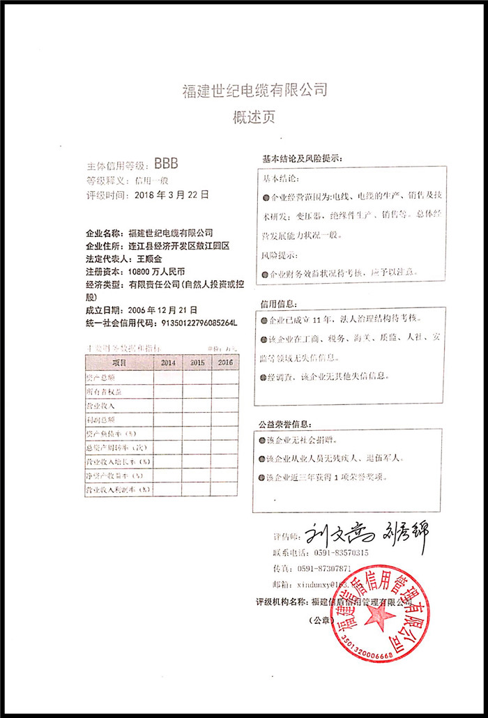 福建世紀(jì)電纜有限公司 XDPJ201803172