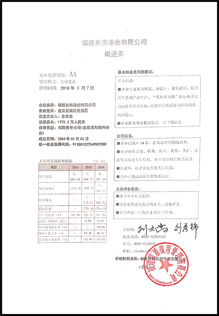 福建東海漆業(yè)有限公司 XDPJ201803173