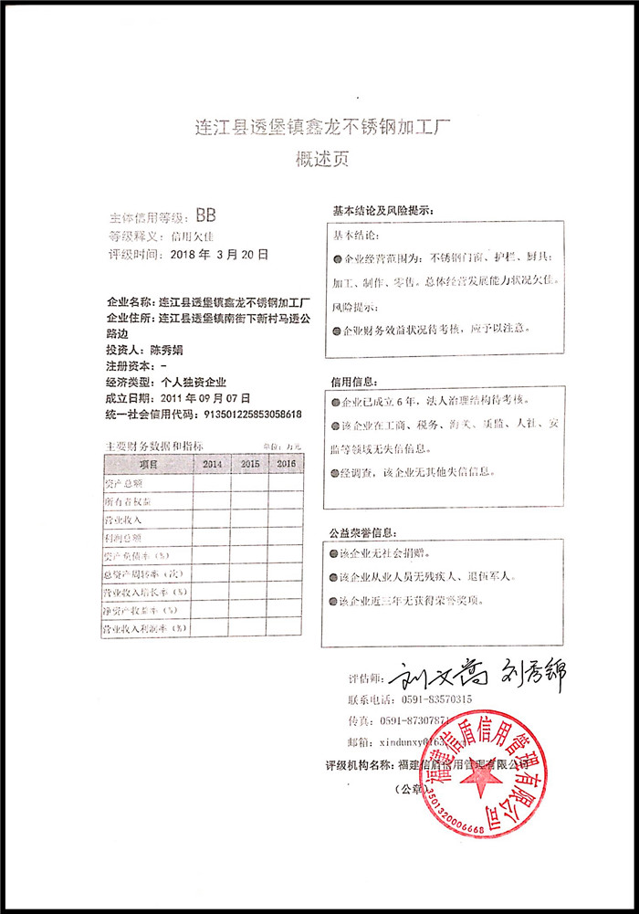 連江縣透堡鎮(zhèn)鑫龍不銹鋼加工廠 XDPJ201803221