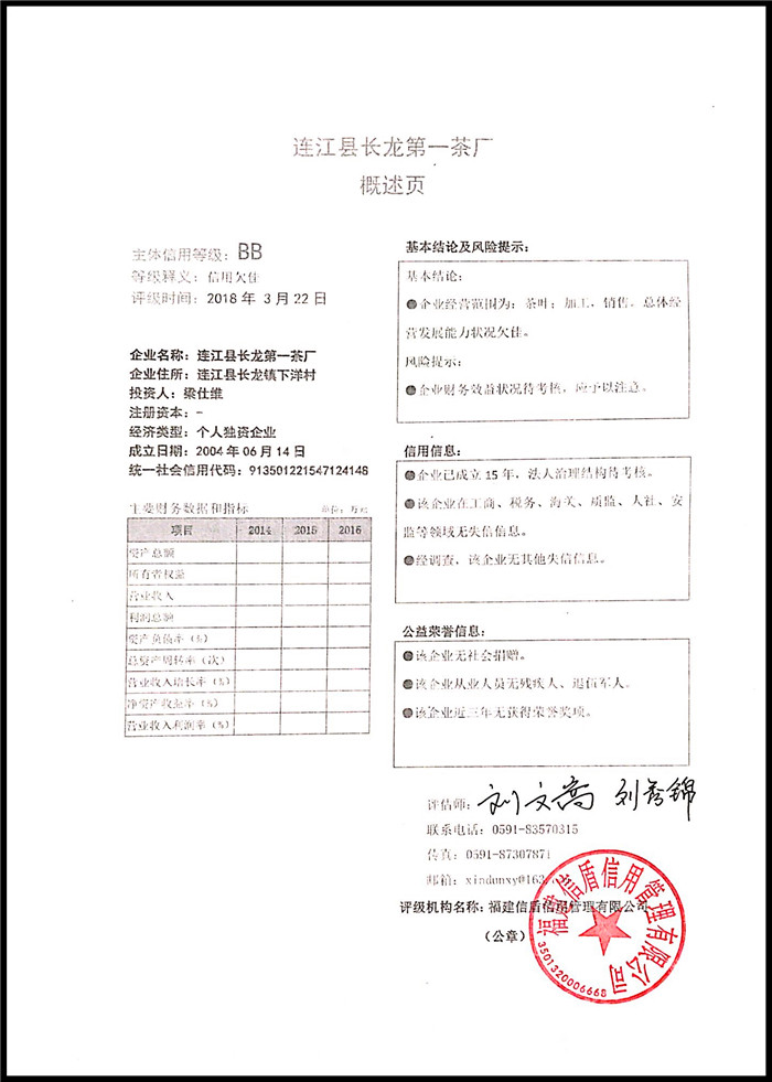 連江縣長龍第一茶廠 XDPJ201803223