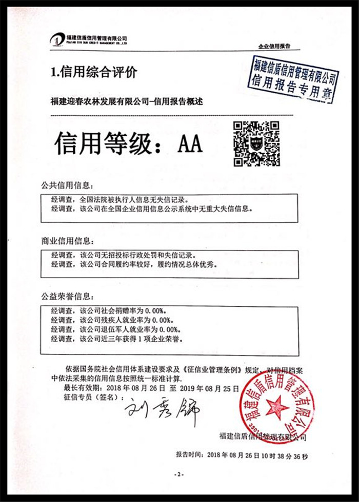福建迎春農林發展有限公司 XDBG201808003