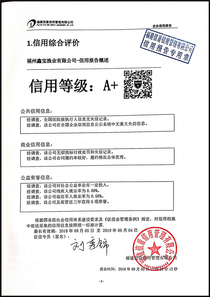 福建鑫寶漁業有限公司 XDBD201809008