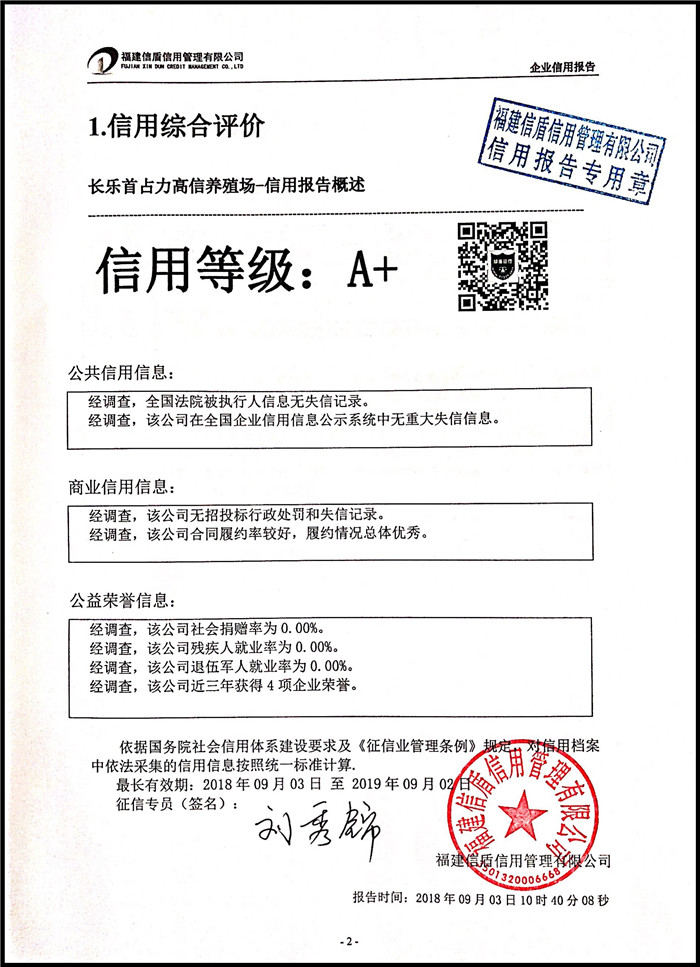 長樂首占力高信養(yǎng)殖場 XDBD201809001