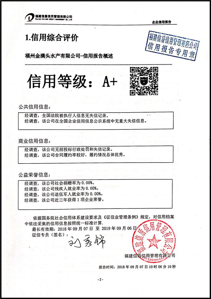 福州金滿頭水產(chǎn)有限公司 XDBD201809010