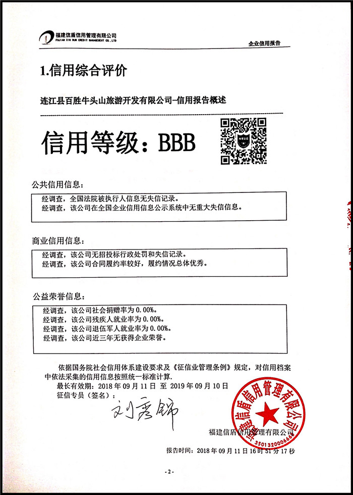 連江縣百勝牛頭山旅游開發(fā)有限公司 XDBD201809020