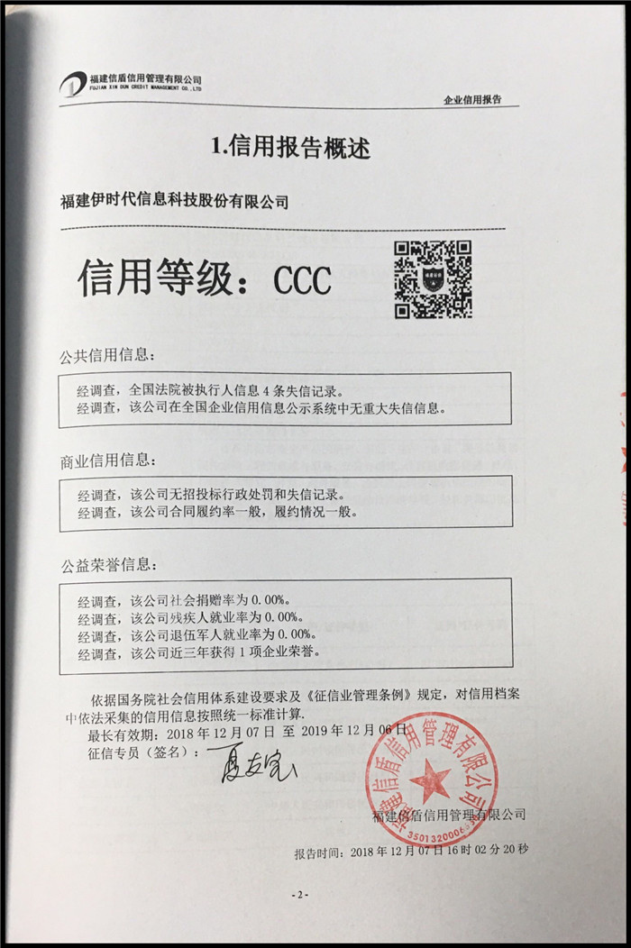 福建伊?xí)r代信息科技股份有限公司 XDBG201812121