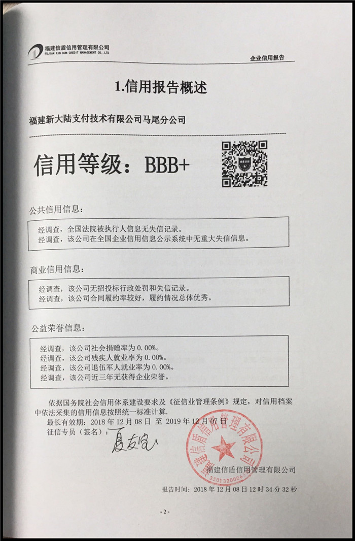 福建新大陸支付技術(shù)有限公司馬尾分公司 XDBG201812169