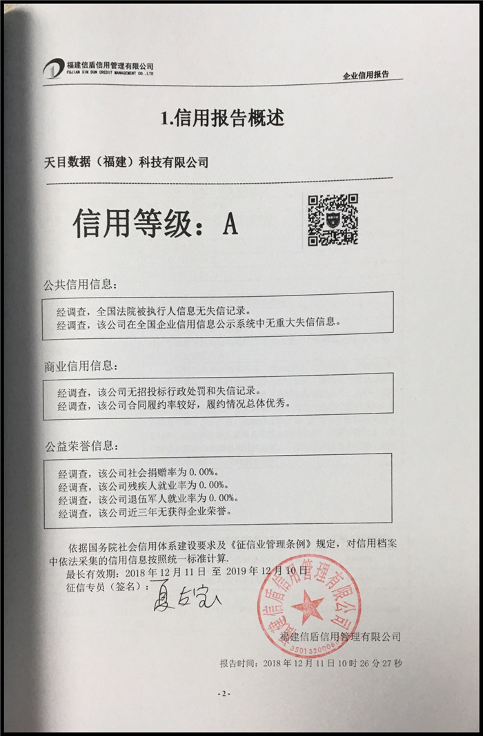 天目數據(福建)科技有限公司 XDBG201812194