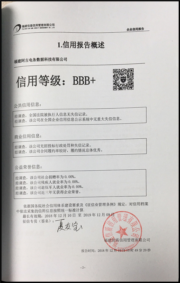 福建阿古電務數據科技有限公司 XDBG201812167