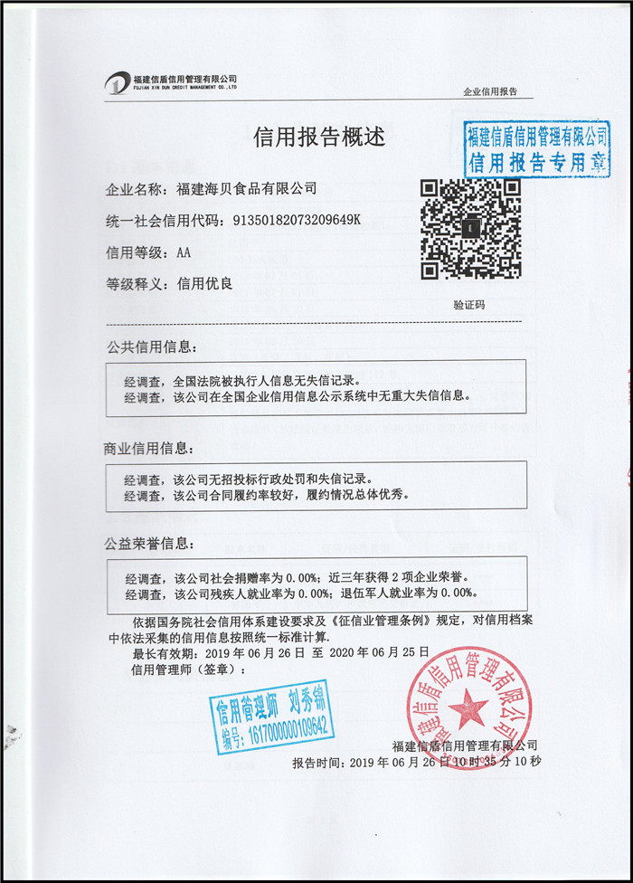 福建海貝食品有限公司2019