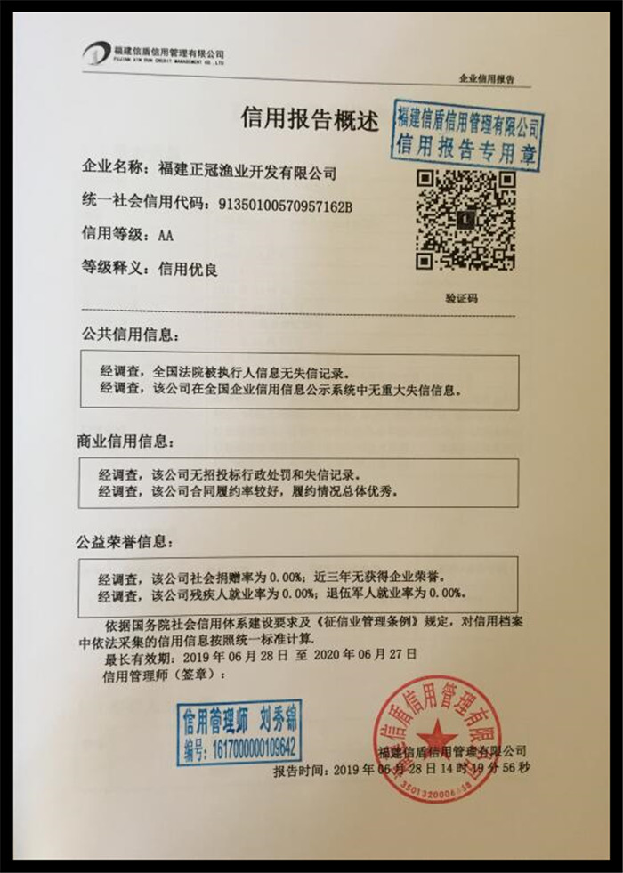 福建正冠漁業(yè)開發(fā)有限公司2019