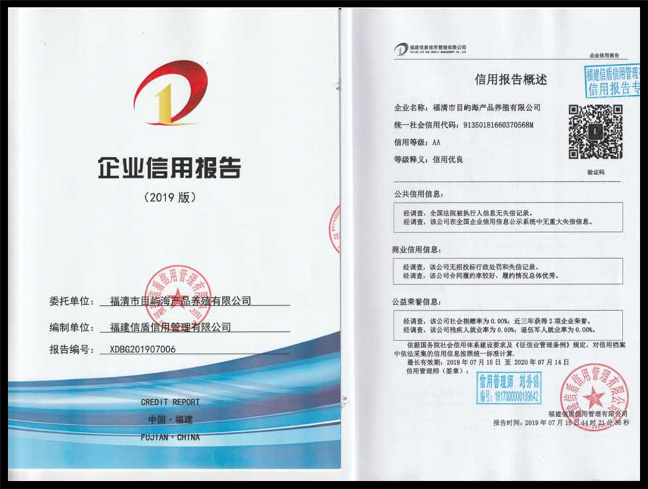 福清市目嶼海產品養殖有限公司2019