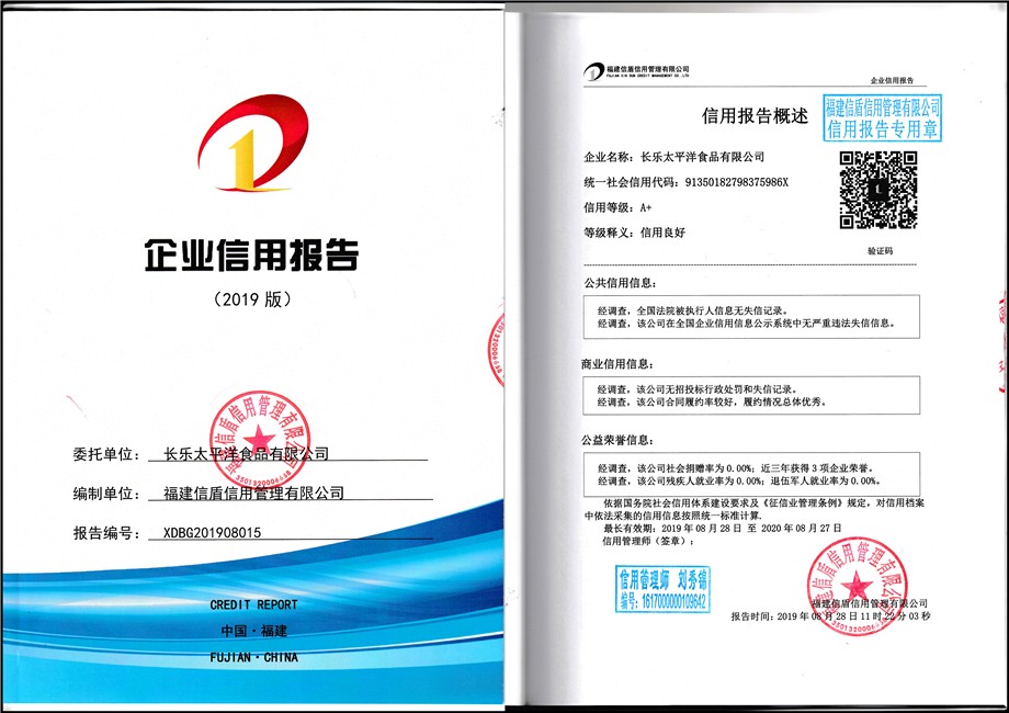 長(zhǎng)樂太平洋食品有限公司2019