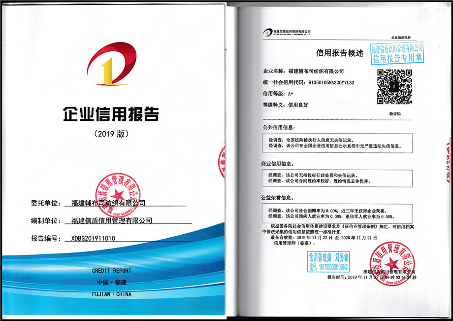 福建輔布司紡織有限公司2019