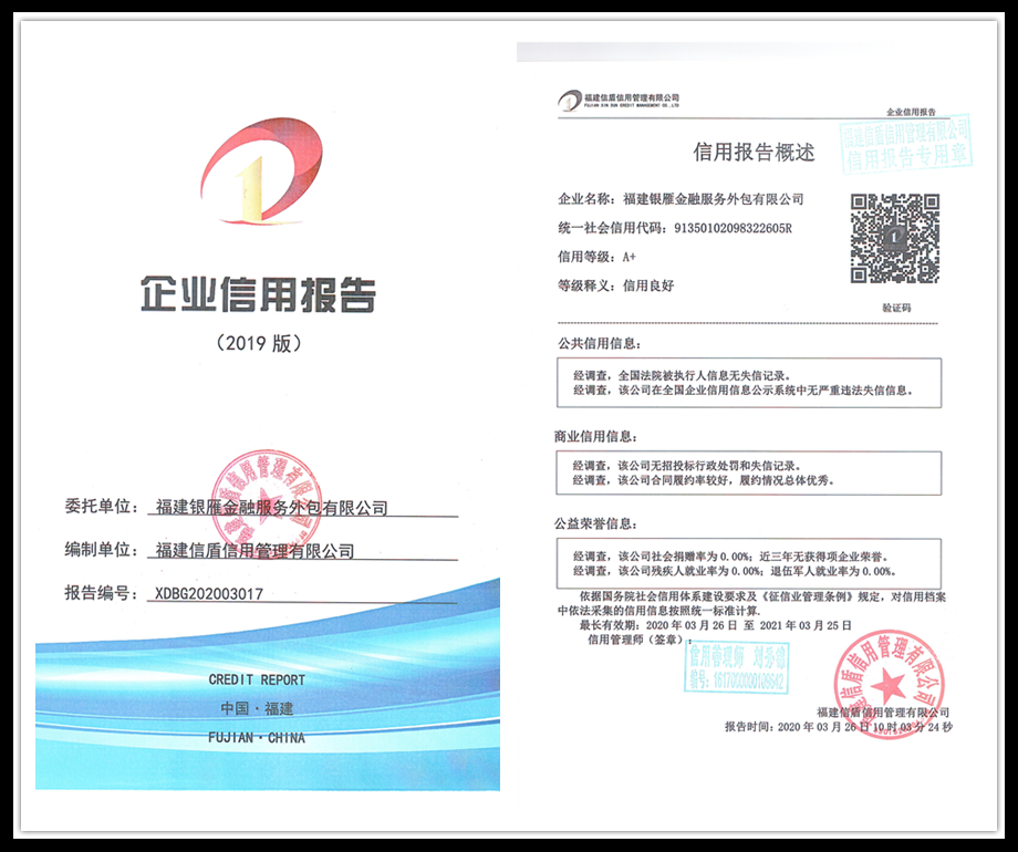 福建銀雁金融服務外包有限公司2020